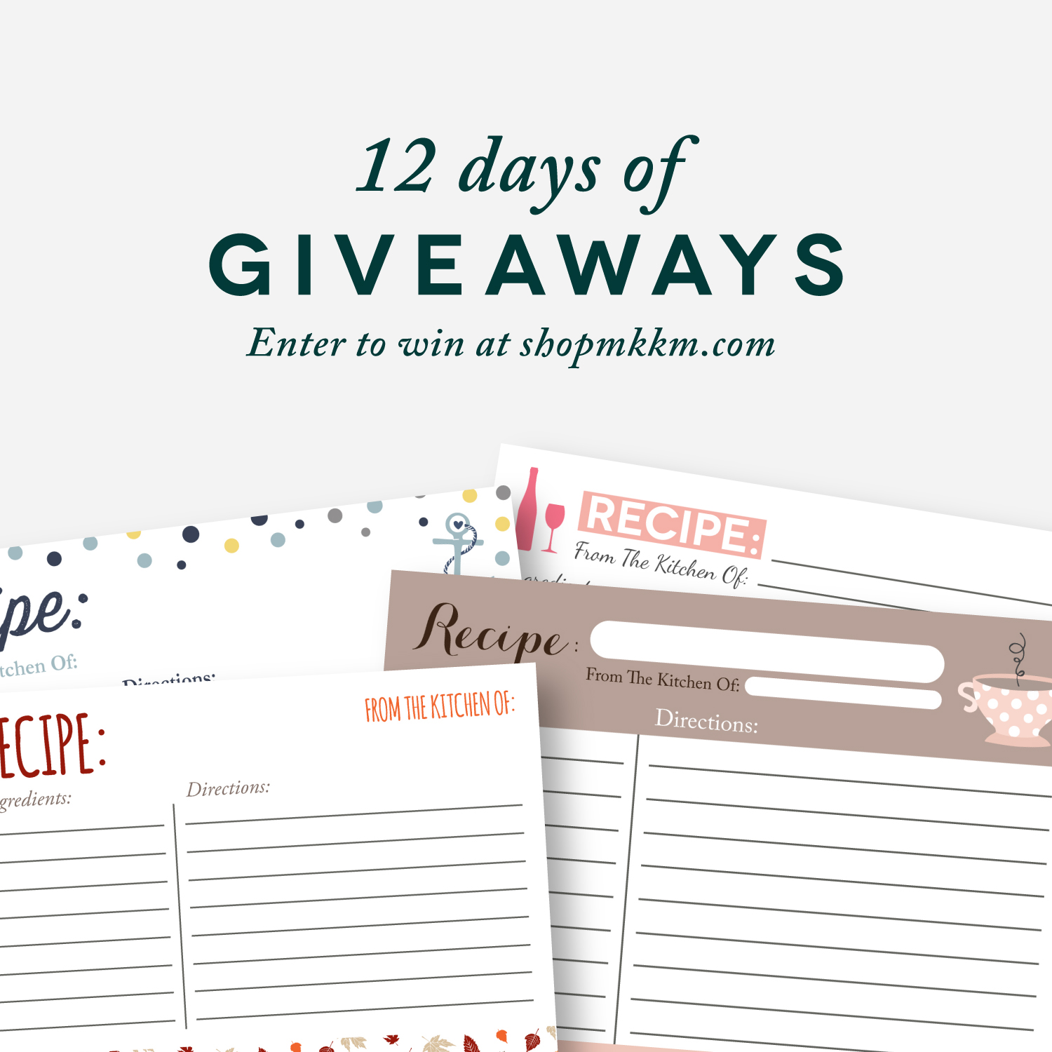 Today's lucky winner will get to choose a set of printed recipe cards sent to them. Get the digital images here. Enter the Giveaway below! The contest will close on the 17th!